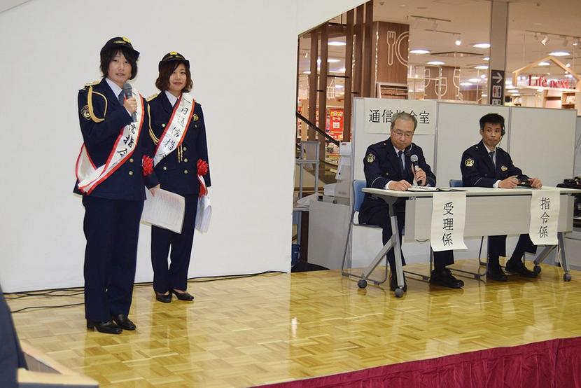 「110番の日」の10日、広報キャンペーンが周南市青山町のゆめタウン徳山のゆめ広場で開かれ、レノファ山口FCレディースの鈴木梓、船越結衣選手が一日指令官に委嘱...