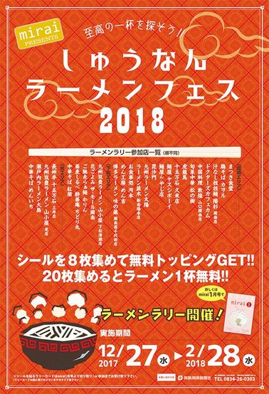 周南の外食産業をラーメンの食べ歩きを起爆剤に盛り上げようと月刊のフリー雑誌「mirai」の企画「しゅうなんラーメンフェス2018」が周南、下松、光市の25店を...