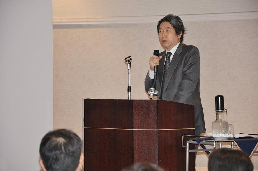 講演する橘川さん
