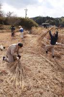 【光市】岩田、束荷でススキ刈り取り 伊藤公生家のかやぶき屋根に 3月末に完成