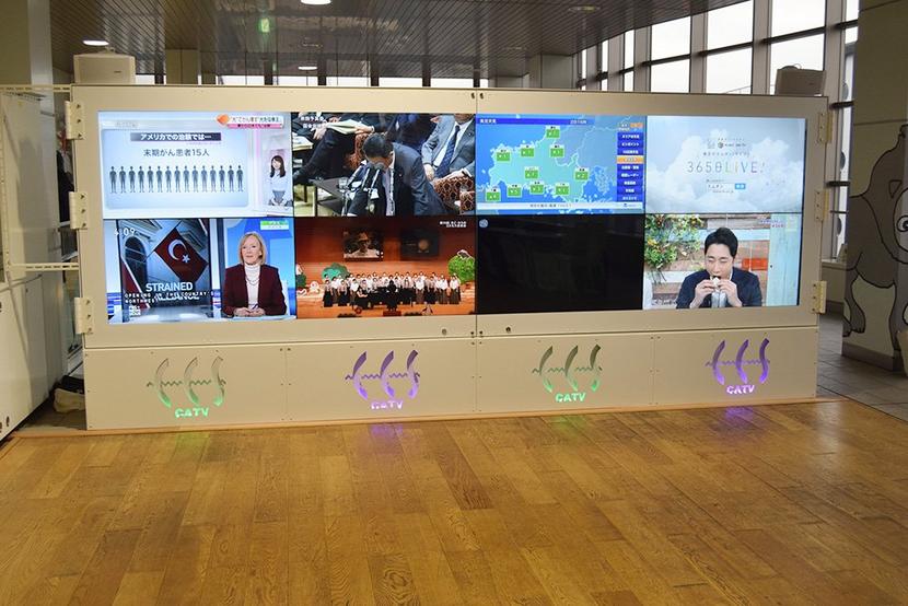 周南市のケーブルテレビ局、シティーケーブル周南・CCS(岡田幹矢社長)は徳山駅の南北自由通路の新幹線口側に49インチのハイビジョンモニター8面を並べたマルチビ...