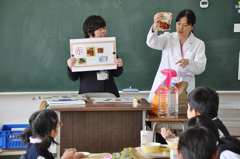 周南市の高尾学校給食センターが配送する小中学校5校で12日、災害時などのために備蓄している非常食を食べる「防災給食」があり、そのうち周陽小(河村浩一郎校長、2...