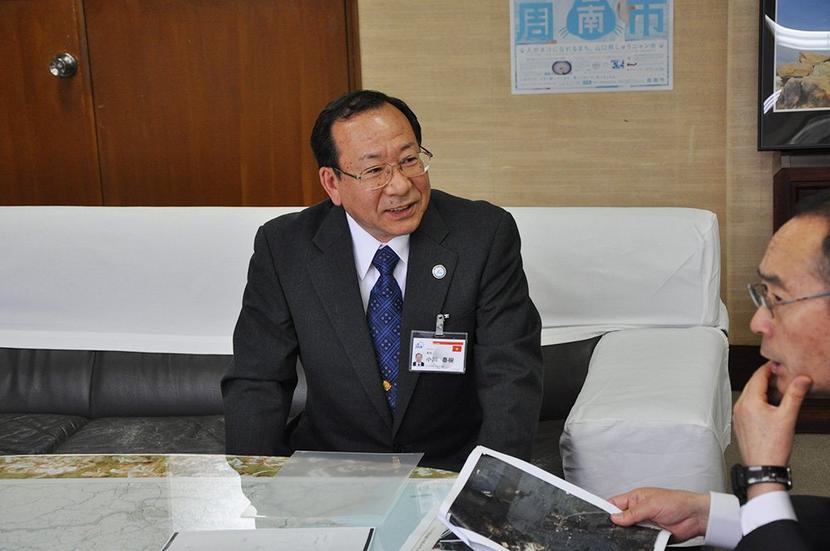 市長に報告する小川さん