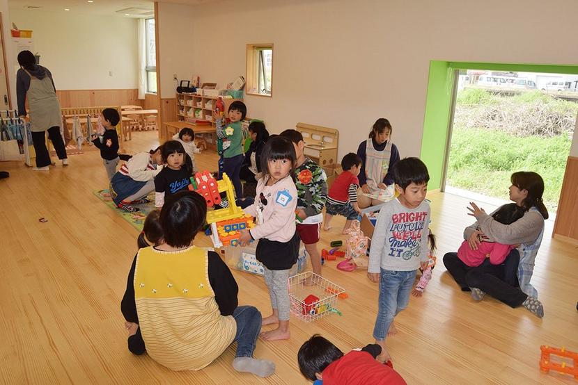 新しい園舎で遊ぶ子どもたち