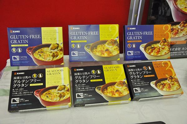 「湯葉と豆乳のグルテンフリーグラタン」は小麦粉や乳製品を使わず、大豆粉や豆乳、豆乳クリームをベースに自然な味わいに仕上げた冷凍食品。周南市戸田のカン喜(上坂陽...