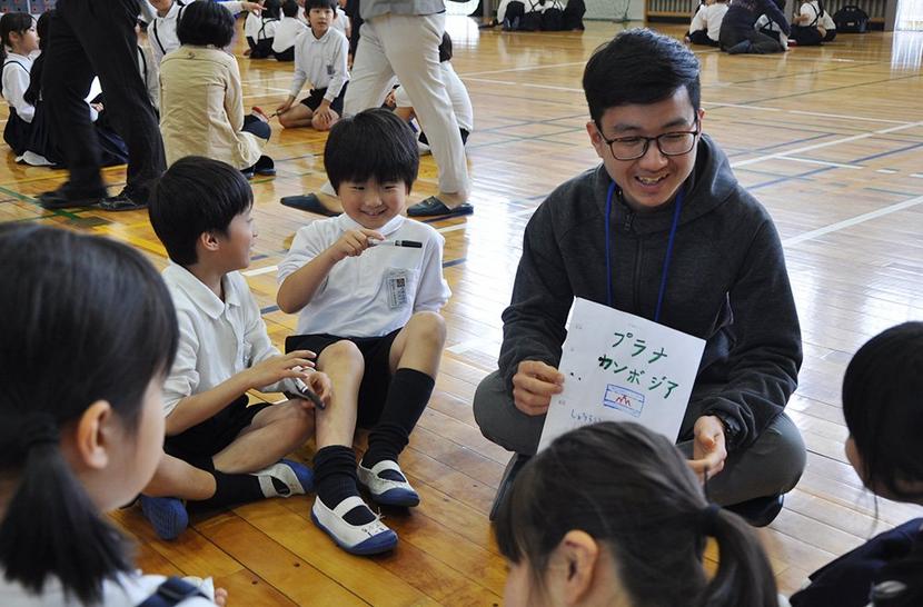 周南市の徳山大学の6カ国からの留学生16人が9日、近くの久米小(石田勝己校長、489人)を訪れ、2年生約100人と会話やゲームをして楽しんだ。留学生たちはこの...
