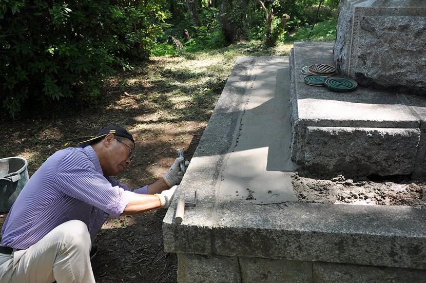 周南市久米天神山の久米神社にある忠魂碑が建立から100年近くが経過して老朽化していることから、市連合遺族会(大川勝也会長)は15日、ひび割れなどの修繕に取り組...