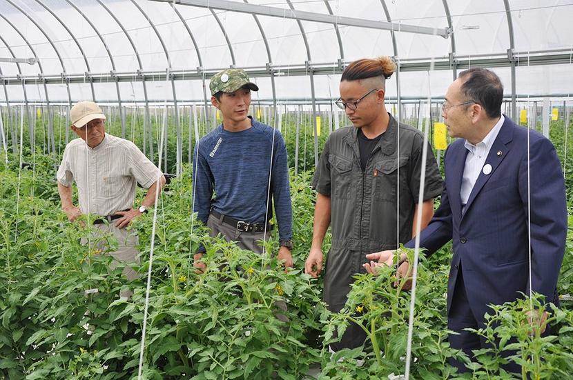 周南市は「新規就農者パッケージ支援制度」第1期生で、鹿野地区の大潮で今年、就農した今井康貴さん(28)と森光尚大さん(24)にトマト栽培のためのビニールハウス...