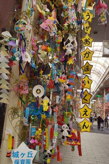 周南市のみなみ銀座で22日から第46回徳山駅前商店街七夕まつりが始まり、徳山地区の20の幼稚園、保育園の園児2,165人がササ竹に飾りつけた七夕飾り30本が通...