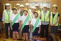 【周南市】そろいの帽子、ベスト 徳山小校区見守りタイ