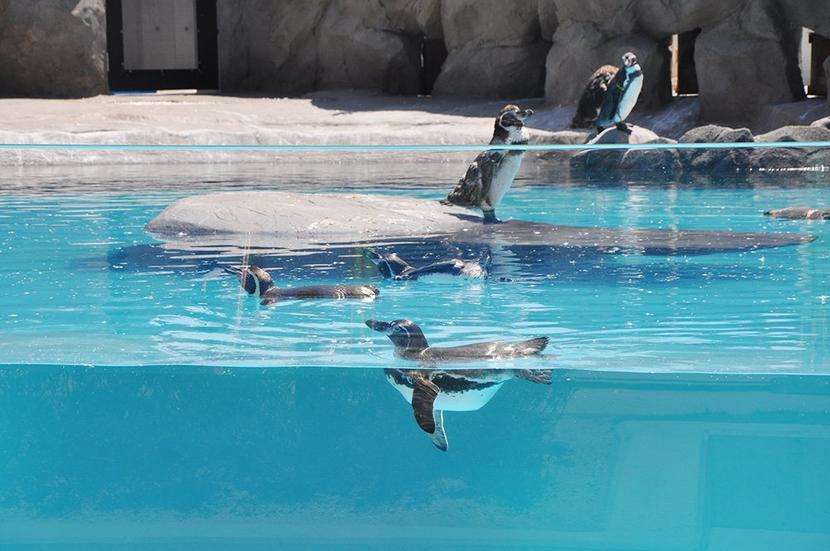 新しいプールで泳ぐペンギン