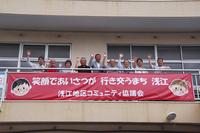【光市】「笑顔であいさつ」目指して 浅江コミュニティ協が横断幕