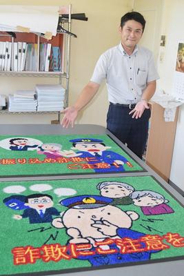 周南市御弓丁のリースキン周南営業所(河井=こうい=大樹所長)が振り込め詐欺の被害防止を呼び掛ける玄関用マットを作った。金融機関などに利用を呼び掛けている。 ...