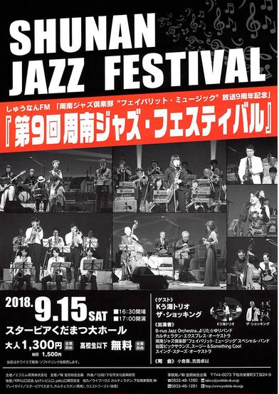 コミュニティーFM局、エフエム周南(藤田徹社長)の第9回周南ジャズ・フェスティバルが15日午後5時から下松市のスターピアくだまつ大ホールで開かれ、県内のジャズ...