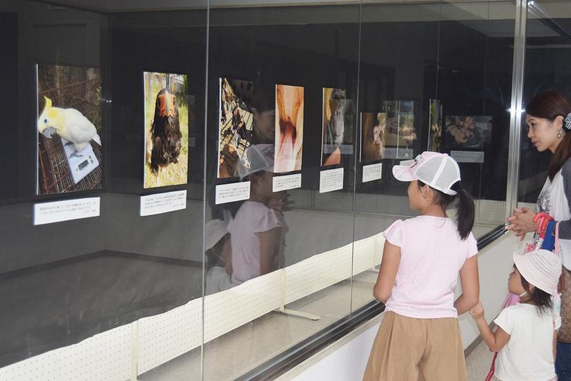 周南市の徳山動物園で「飼育員の撮った秘蔵写真展2」が展示館で始まり、日常的に身近で接する飼育員ならではの普段は見られない動物たちの姿をとらえた43点と、ミーア...