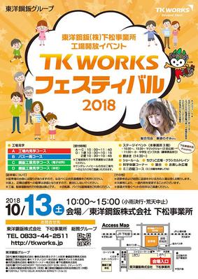 下松市西豊井の東洋鋼鈑下松事業所(荒瀬真事業所長)で工場開放イベント“TK WORKSフェスティバル“が13日午前10時から開かれ、工場見学や科学体験などがあ...