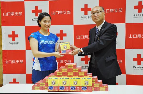 周南市の西京銀行の行員で作る女子実業団バドミントンチーム、ACT SAIKYOは1日、レトルトカレー「ACTカレー」1,200食を日本赤十字社県支部に贈った。...