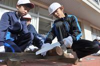 【周南市】丸太切りに挑戦 櫛浜小で森林体験学習