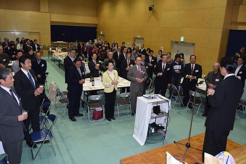 周南市の櫛浜市民センター講堂で1日夕、第41回櫛浜地区諸団体ふれあい会が開かれ、住民団体などの110人が手づくりの料理を囲んでなごやかに歓談し、ビンゴゲームな...