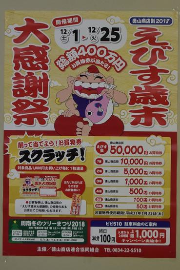 周南市の徳山商店街で1日からえびす歳末大感謝祭が始まった。25日までで、1,080円の買い物でスクラッチカードを渡し、当たりが出れば最高5万円の買い物券として...