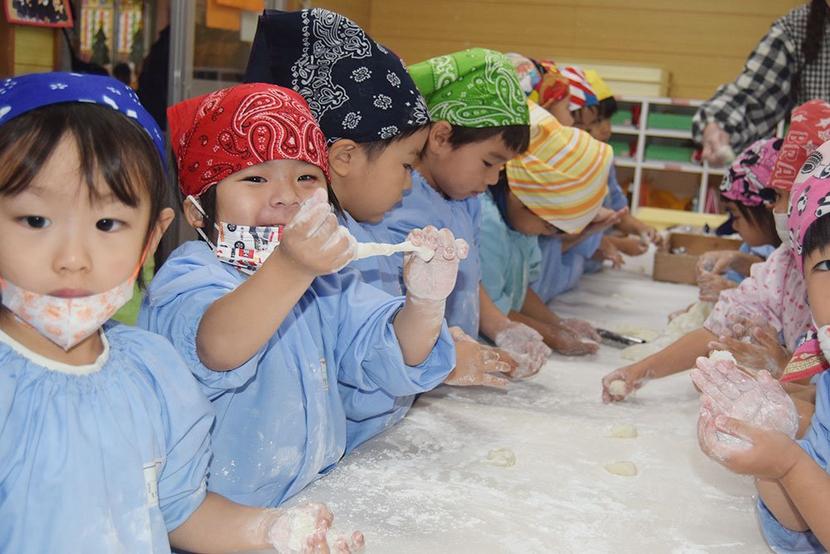 餅を丸める園児