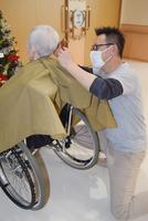 【周南市】正月前にさっぱりと 徳山理容組合がつづみ園で奉仕