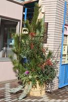 [徳山動物園]正門前に大門松 市内の竹や松で手づくり
