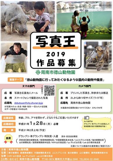 周南市の徳山動物園は「徳山動物園に行ってみたくなるような園内の動物や風景」をテーマにした写真コンテスト「写真王2019」(新周南新聞社など協賛)を開くことにな...