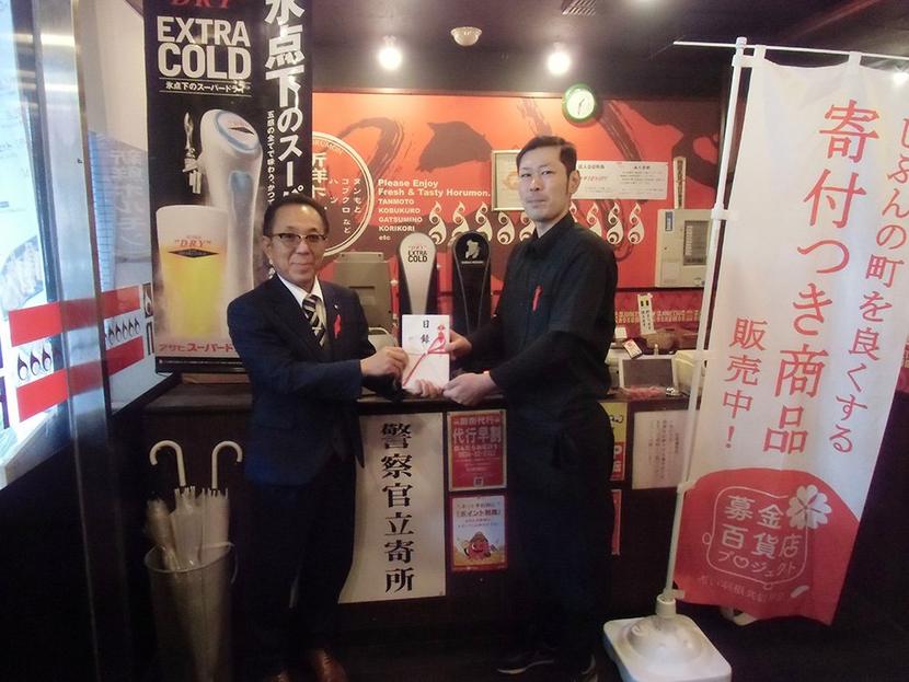 共同募金への寄付つき商品などを事業者が販売する県共同募金会の”募金百貨店プロジェクト”に参加している周南市銀座の徳山酒場情熱ホルモンは14日、3万5,035円...
