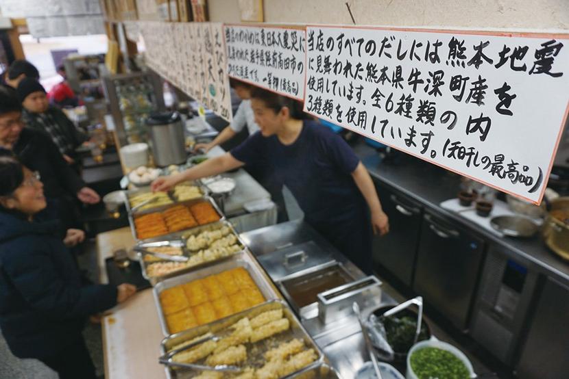 周南市の「手打ちうどん くうかい」がうどんに載せるワカメを東日本大震災の被災地の岩手県陸前高田市、だしを取るムロアジとサバ、ウルメイワシを熊本地震の熊本県牛深...