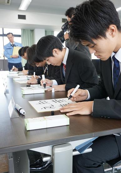 抱負を色紙に書く新成人社員