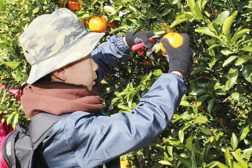 周南地域の子どもたちが12月28日、大島大橋の送水管破断事故の影響で遅れているかんきつ類の収穫を応援しようと周防大島町を訪れ、ポンカン500キログラムを摘み取...