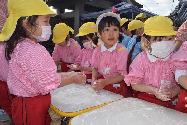 【周南】餅つき 「よいしょ」 蓮生・まこと幼園児がこども報恩講