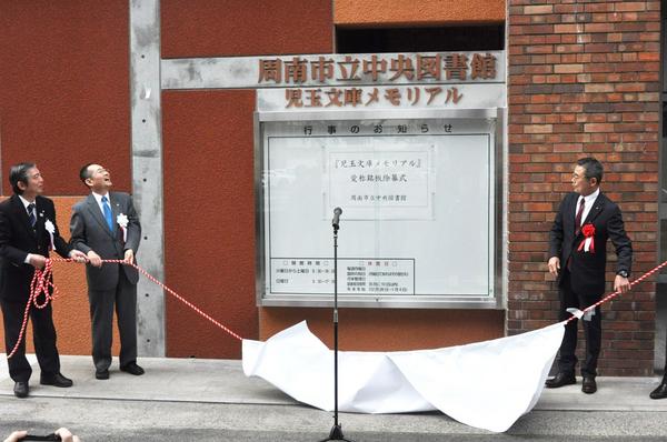 【周南】「児玉文庫メモリアル」除幕 資料コーナーも充実