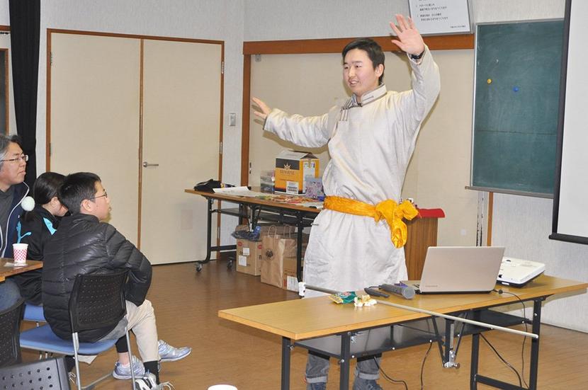 モンゴルの民族衣装の留学生