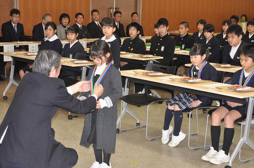 文化・芸術・科学、スポーツなどの県大会以上で活躍した小中学生をたたえる周南市学校教育栄光賞の授与式が8日、徳山保健センターで開かれ、小学生は個人12人、中学生...