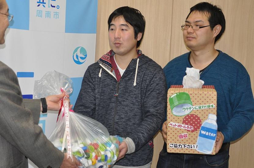 周南市徳山港町のしゅうなん若者サポートステーションに登録している若者たちが1月31日、5年がかりで集めたペットボトルのふた8千個、約20キロを同市に託した。ふ...