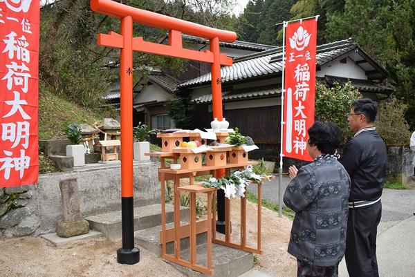 山口県周南市菊川地区の東南野の稲荷神社と大歳神社のほこらの前に地域の住民の手で塩化ビニール製の立派な鳥居が完成し、23日、お祝いの神事を開いて祝った。 この...