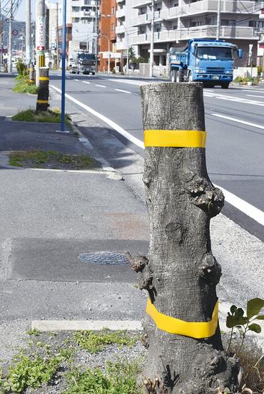 伐採された街路樹の残った根元