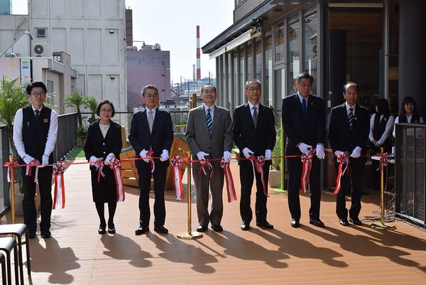 山口県周南市の徳山駅前図書館2階のテラスに14日、「あそらぼテラス」がオープンし、デンマーク製の遊具3台が設置された。この日はオープニングセレモニーが開かれ、...