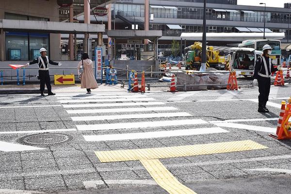 山口県周南市の徳山駅前の銀座通りの南北を結ぶ地下道が17日に閉鎖され、横断歩道が設置された。地下道は階段で出入りしなければならなかったことからバリアフリーのた...