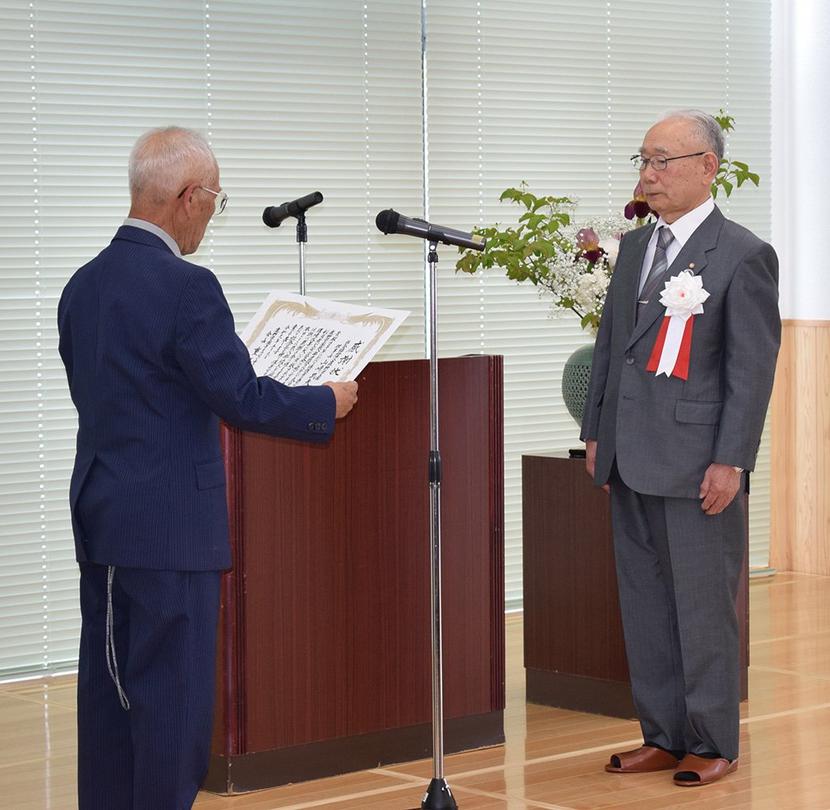 感謝状を受け取る山崎理事長