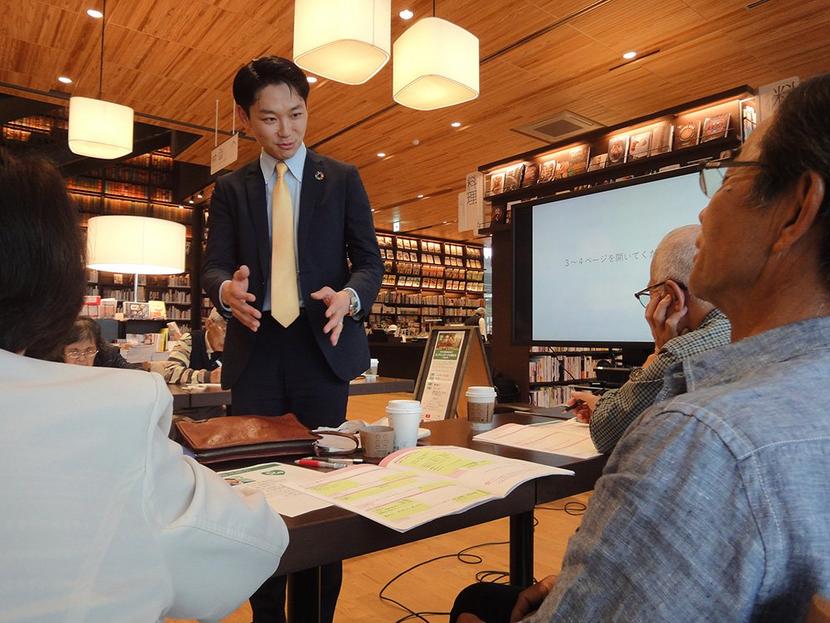 エンディングノートの書き方を紹介する吉本さん(中央)