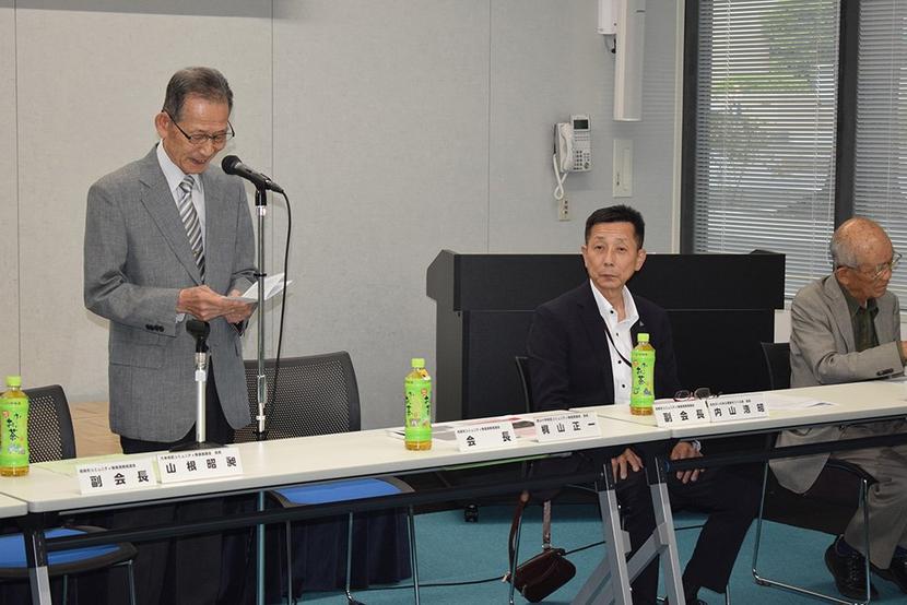 あいさつする梶山会長