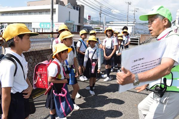 周南市の久米小(石田勝己校長、525人)は12日、月に1回の一斉下校に合わせ、通学路の大雨や地震の時に危険な場所を点検する防災ウォッチングを開いた。 同校...