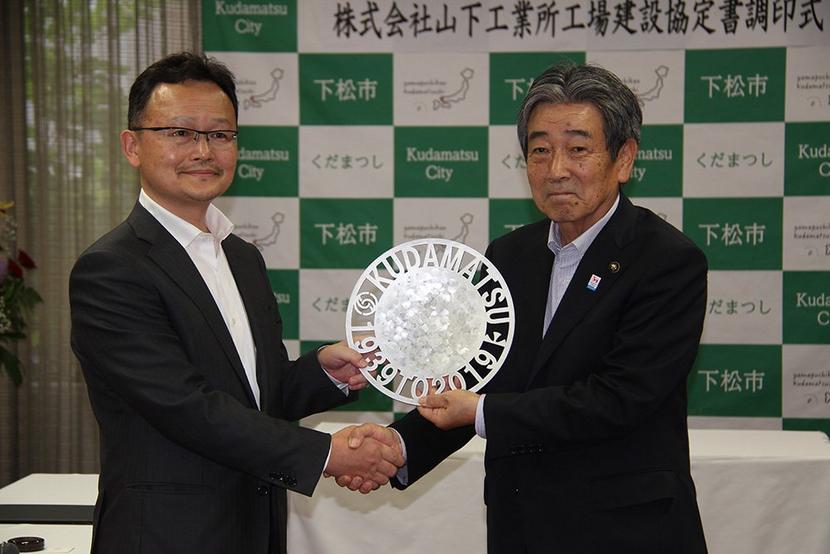 下松市東海岸通りの山下工業所(山下竜登社長)の工場増設・新工場建設に伴う市との協定書調印式が6月27日、市役所で内畠義裕県商工労働部次長が立ち会って開かれた。...