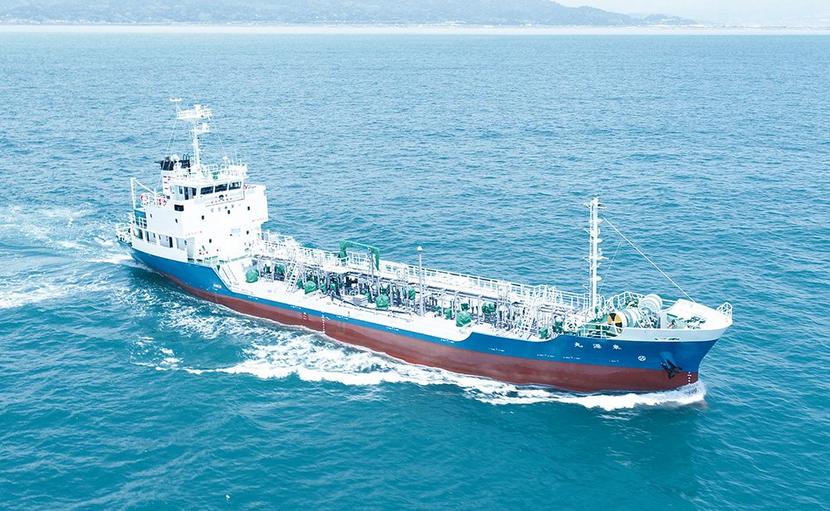 同社の苛性ソーダ運搬専用船としては4代目に当たり、新造は3年ぶりで計5隻を保有する。