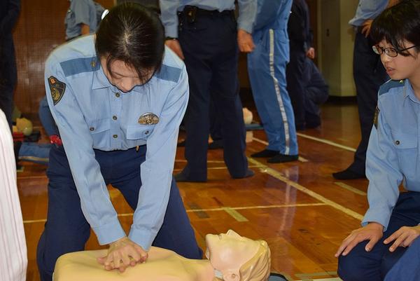 夏の事故に備え心臓マッサージ 警察官が救命講習