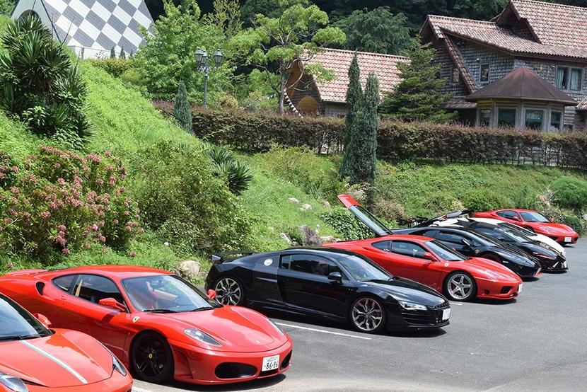 駐車場に並んだスーパーカー
