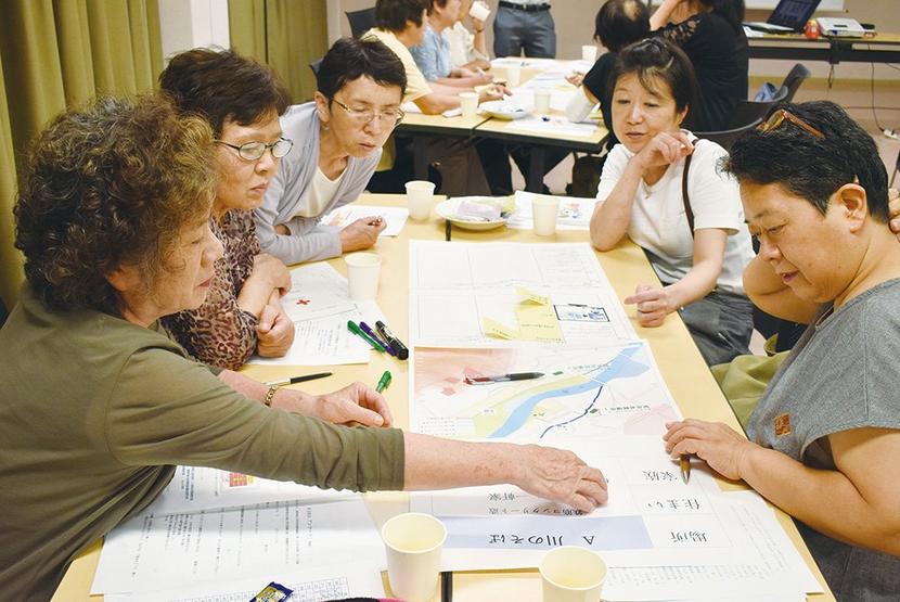 地域周南市周南市の鹿野地区女性団体連絡協議会(岩田キミ会長、6団体)は2日、コアプラザかので自主防災研修を開き、女性を中心に55人が参加、大雨を想定していつ、どの経路で避難するのかを考えるグループワークなどで学んだ。